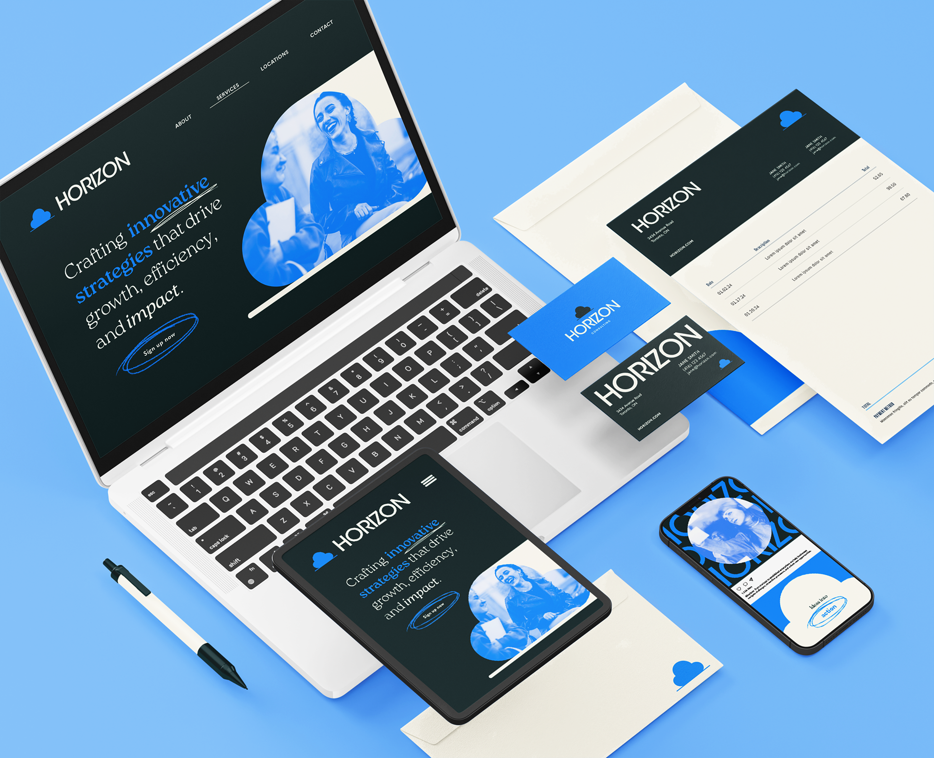 Horizon Consulting was a brand created for a project that was aimed at showcasing the possibilities of an AI-powered logo creation and branding platform.